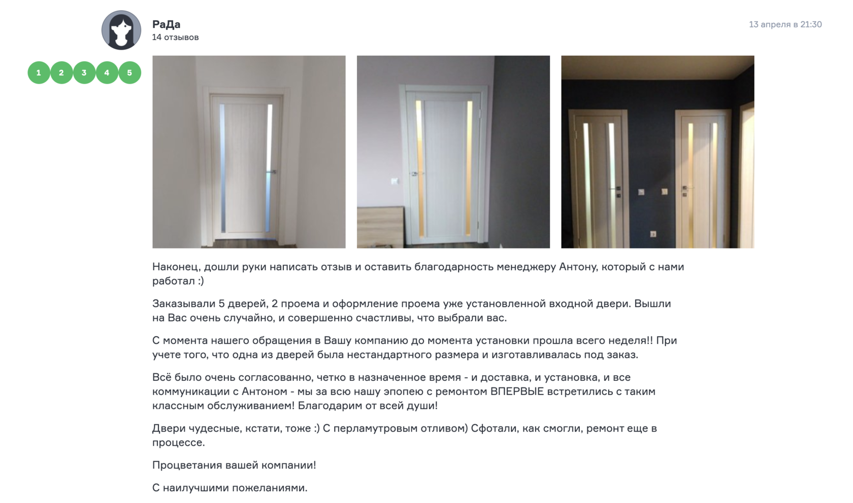 За 6 лет мы научились эффективно продавать двери в магазинах покупателям пришедшим из интернет и научим этому вас. Вы получите доступ к программному комплексу для организации Call центра, к специально адаптированной нами для отраслевых продаж СRM системе, системам аналитики и отчетности. Мы предоставим обучающие материалы по техникам ведения переговоров с целевой аудиторией. Проведем первичное обучение, будем сопровождать вас весь период работы.