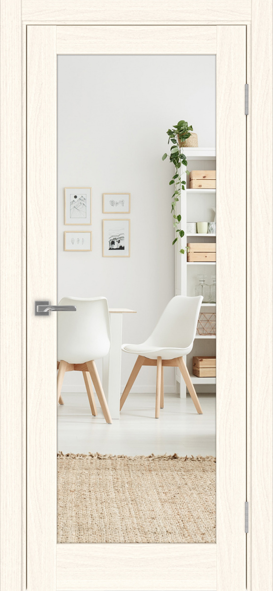 Такой вариант можно считать очень практичным и универсальным, поскольку подходит он к самым разным интерьерам в оформлении помещений. Часто такую дверь ставят в небольших комнатах, чтобы зрительно увеличить пространство.