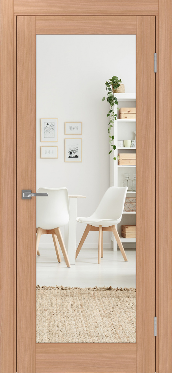 Такой вариант можно считать очень практичным и универсальным, поскольку подходит он к самым разным интерьерам в оформлении помещений. Часто такую дверь ставят в небольших комнатах, чтобы зрительно увеличить пространство.