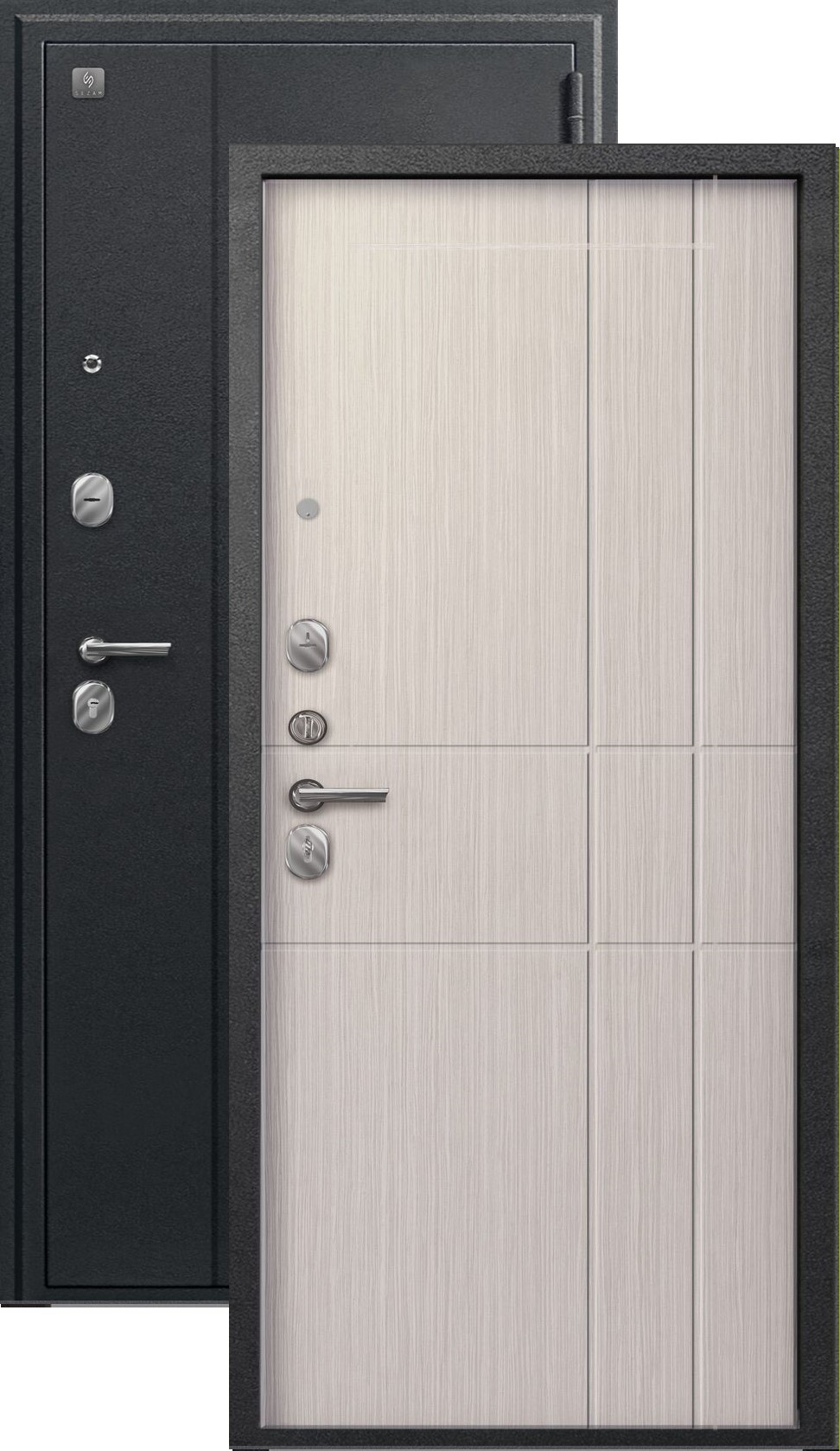 Информация о товаре "Дверь входная Сезам А-02 (2026), 2 замка, 1 мм металл, (черный сатин+капучино 3Д)" актуальна на 05.03.2026