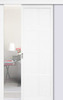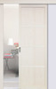 Раздвижная дверь включает в себя одну или две одинаковые створки. Они плавно, поступательно двигаются при открывании параллельно той вертикальной поверхности, на которой они установлены.