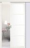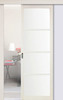 Раздвижная дверь включает в себя одну или две одинаковые створки. Они плавно, поступательно двигаются при открывании параллельно той вертикальной поверхности, на которой они установлены.