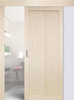 Такая дверь включает в себя одну или две одинаковые створки. Они плавно, поступательно двигаются при открывании параллельно той вертикальной поверхности, на которой они установлены.