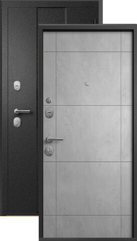 Качественная российская дверь со стильной внешней отделкой черный муар и красивой декоративной панелью толщиной 10 в цвете бетон снежный. Прекрасно подойдет для установки в квартиру. Надежная модель, которая прослужит долгие годы.