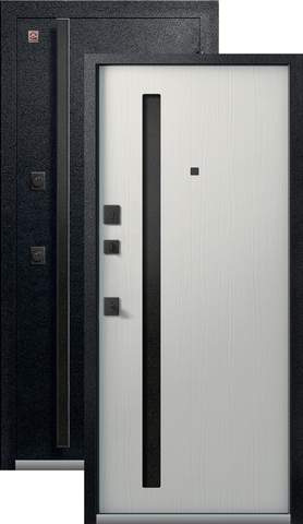 Имеет очень высокую прочность, благодаря толстой стали 2 мм. Оснащена двумя надежными замками, минимум один из которых имеет высший класс взломостойкости по ГОСТ 5089-2003 (4 класс). Есть врезная броненакладка, защищающая цилиндровый замок от высверливания. Она утоплена в дверное полотно, поэтому ее практически невозможно сбить. Есть ночная задвижка — дополнительная защита от взлома. Никто не сможет зайти, вскрыв замок, когда вы дома.
