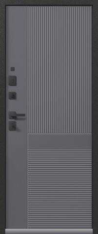 Повышенной надежности российская сейф-дверь со стильной внешней отделкой муар серый/графит распил и красивой декоративной панелью толщиной 16 в цвете кашемир графит. Прекрасно подойдет для установки в квартиру. Солидная модель, которая хорошо защитит и подчеркнет статус.