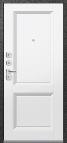 Повышенной надежности российская сейф-дверь со стильной внешней отделкой муар графит и красивой декоративной панелью толщиной 22 в цвете кашемир белый. Прекрасно подойдет для установки в квартиру. Солидная модель, которая хорошо защитит и подчеркнет статус.