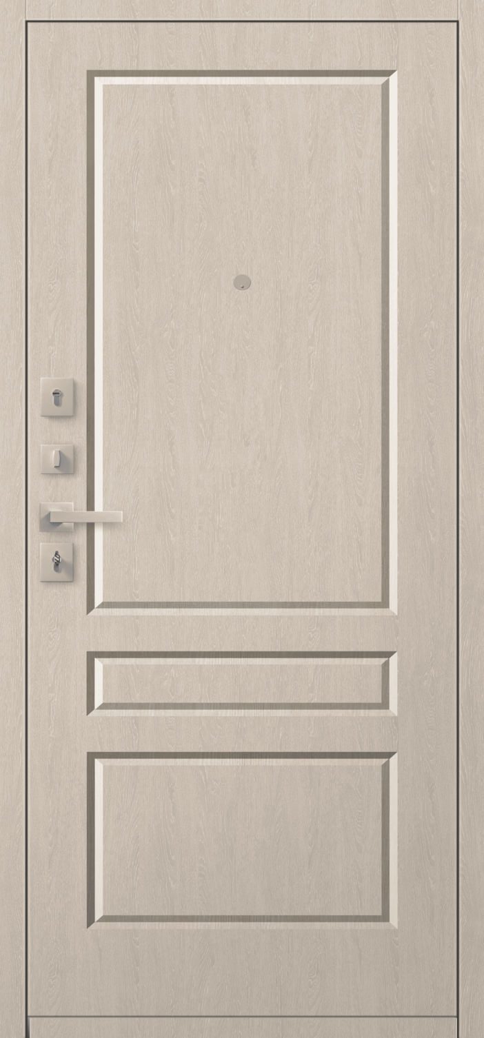 Имеет очень высокую прочность, благодаря толстой стали 2 мм. Оснащена двумя надежными замками, минимум один из которых имеет высший класс взломостойкости по ГОСТ 5089-2003 (4 класс). Есть врезная броненакладка, защищающая цилиндровый замок от высверливания. Она утоплена в дверное полотно, поэтому ее практически невозможно сбить. Есть ночная задвижка — дополнительная защита от взлома. Никто не сможет зайти, вскрыв замок, когда вы дома.