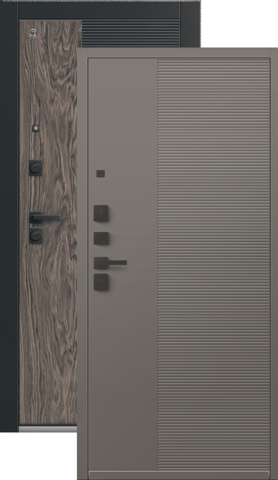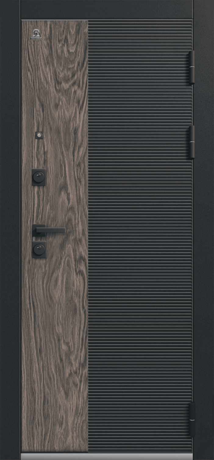 Повышенной надежности российская сейф-дверь со стильной внешней отделкой муар черный/кварц черный/орех мокко и красивой декоративной панелью толщиной 16 в цвете кашемир базальт. Прекрасно подойдет для установки в квартиру. Солидная модель, которая хорошо защитит и подчеркнет статус.