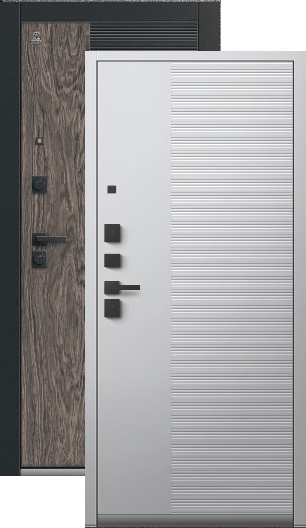 Имеет очень высокую прочность, благодаря толстой стали 2 мм. Оснащена двумя надежными замками, минимум один из которых имеет высший класс взломостойкости по ГОСТ 5089-2003 (4 класс). Есть врезная броненакладка, защищающая цилиндровый замок от высверливания. Она утоплена в дверное полотно, поэтому ее практически невозможно сбить. Есть ночная задвижка — дополнительная защита от взлома. Никто не сможет зайти, вскрыв замок, когда вы дома.