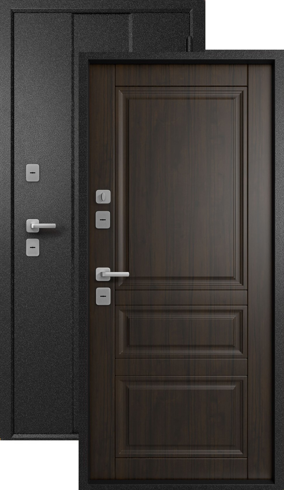 Наиболее толстые и практичные двери, что обеспечивает максимальный уровень тепло- и шумоизоляции.