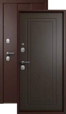 Толстая российская термодверь превосходно сохраняет тепло и обеспечивает надежную защиту от промерзания. Имеет двойной терморазрыв по полотну и коробу, проверена сибирскими морозами. Прекрасно подойдет для установки в частном доме, так как не пропускает холод и не обмерзает.