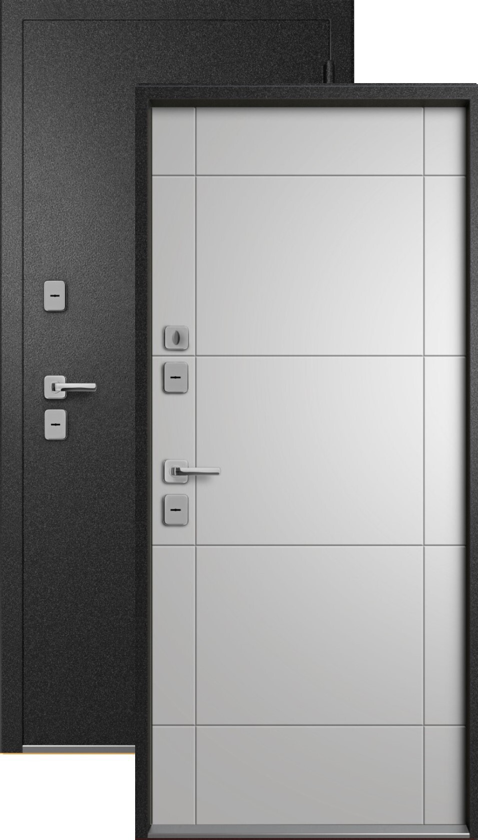 Наиболее толстые и практичные двери, что обеспечивает максимальный уровень тепло- и шумоизоляции.