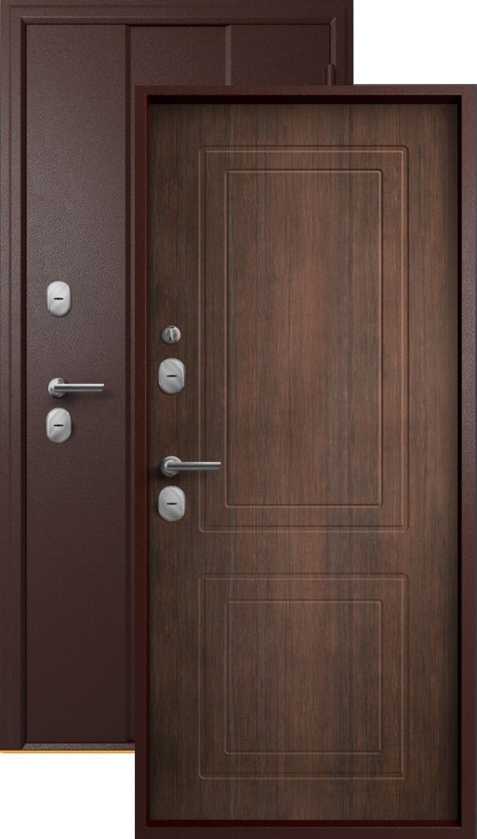 Наиболее толстые и практичные двери, что обеспечивает максимальный уровень тепло- и шумоизоляции.