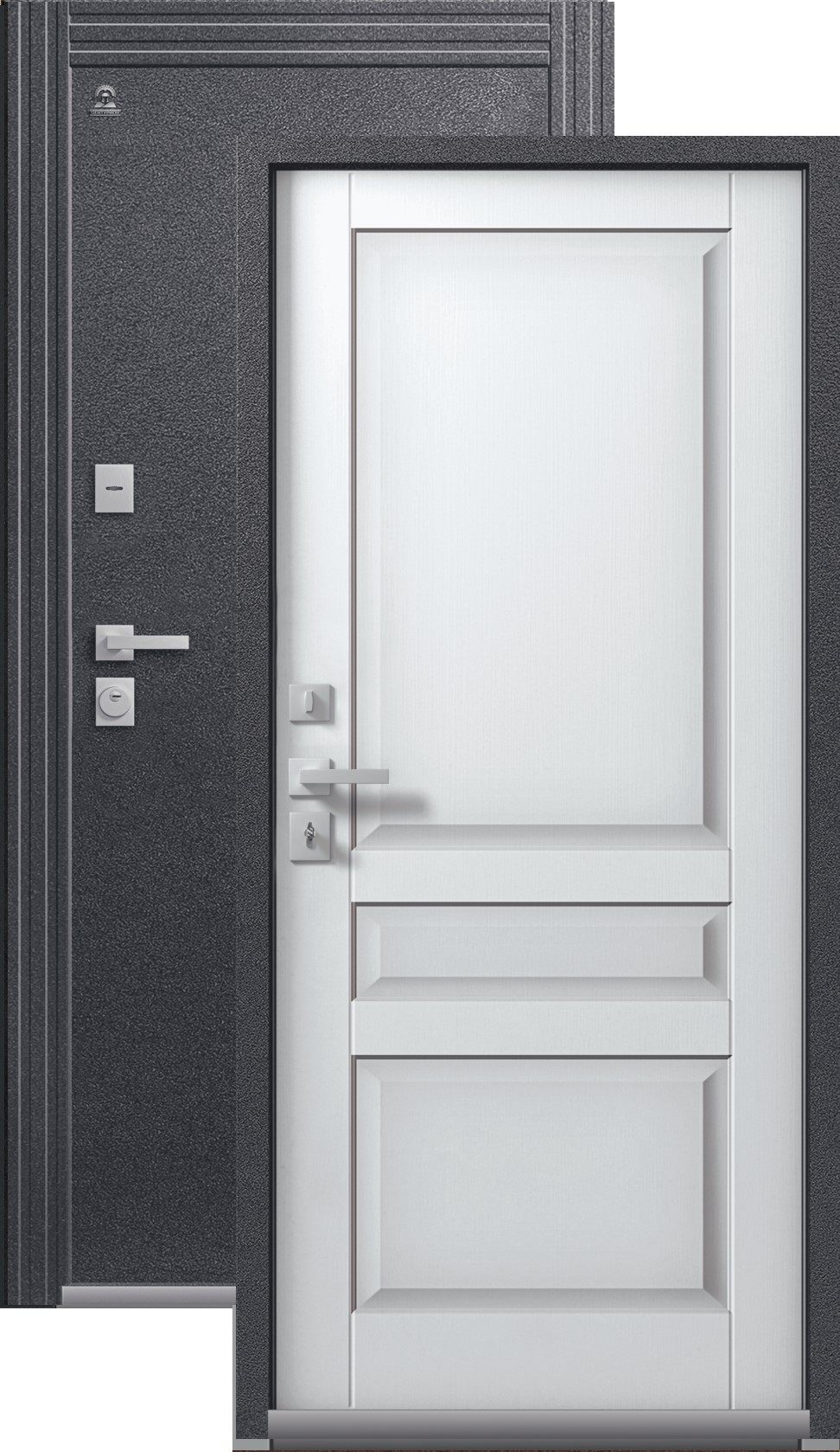 Имеет очень высокую прочность, благодаря толстой стали 2 мм. Оснащена двумя надежными замками, минимум один из которых имеет высший класс взломостойкости по ГОСТ 5089-2003 (4 класс). Есть врезная броненакладка, защищающая цилиндровый замок от высверливания. Она утоплена в дверное полотно, поэтому ее практически невозможно сбить. Есть ночная задвижка — дополнительная защита от взлома. Никто не сможет зайти, вскрыв замок, когда вы дома.