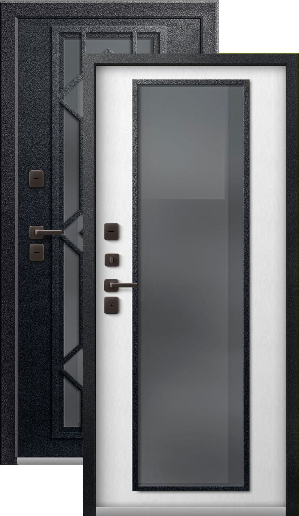 Терморазрыв - это материал, который расположен между внешней и внутренней частью дверного короба. Он препятствует промерзанию и исключает появления инея на внутренней части короба. В данном случае терморазрыв имеется и на полотне и на коробе. Такие модели рекомендуются к покупке в регионах с низкими температурами и резкими температурными перепадами.